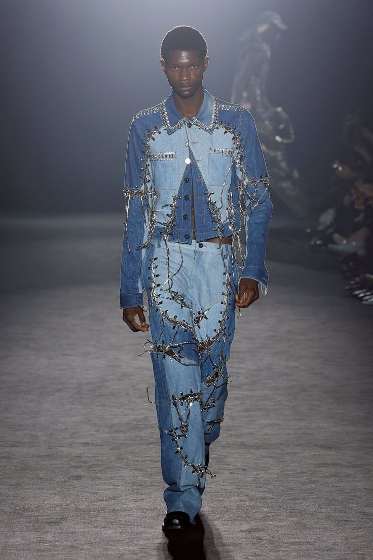Le denim n’est pas une contrainte mais un terrain d’expérimentation : brut, recyclé, déstructuré, brodé, tissé, brûlé, superposé ou détourné de son usage premier.